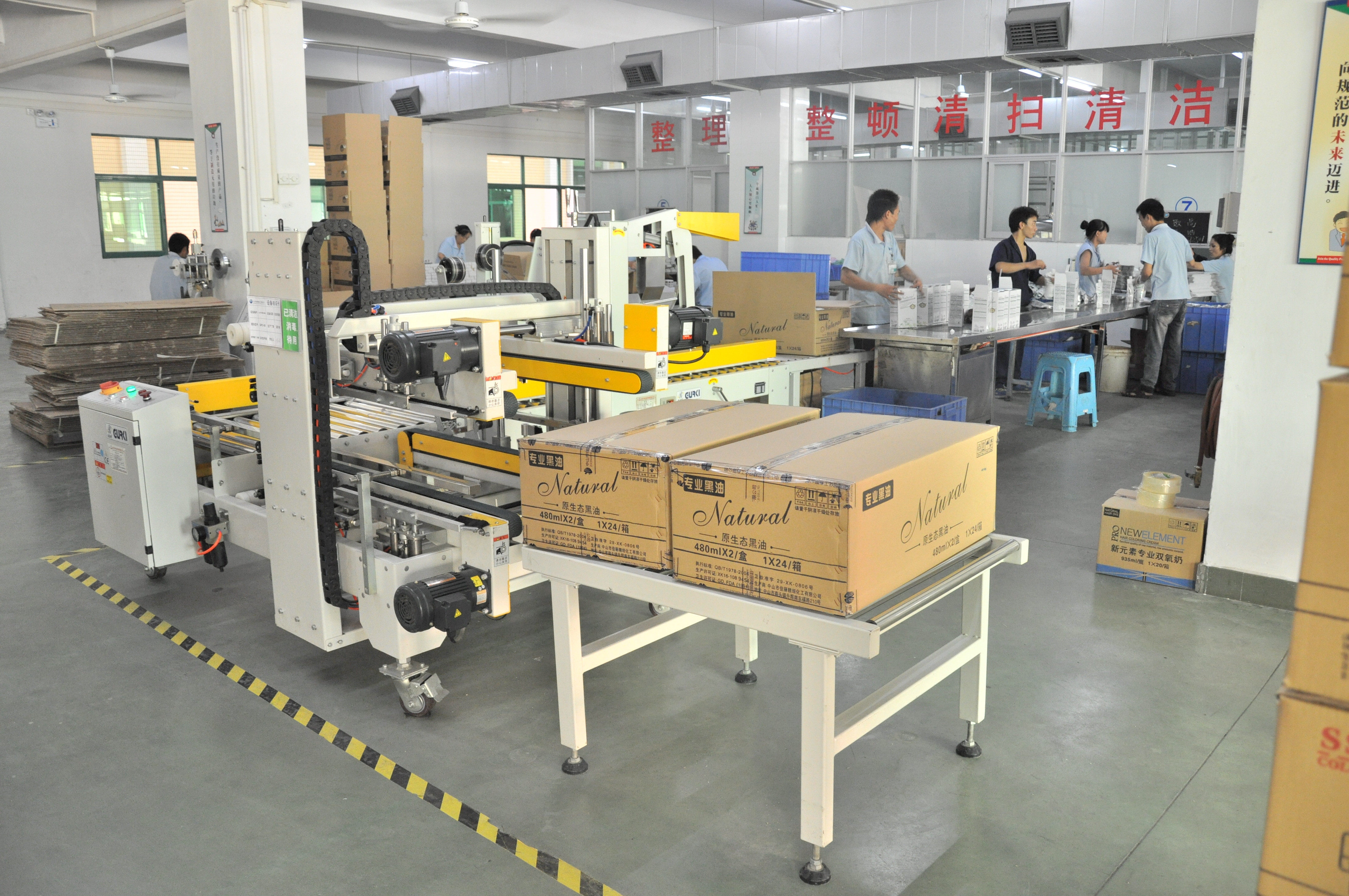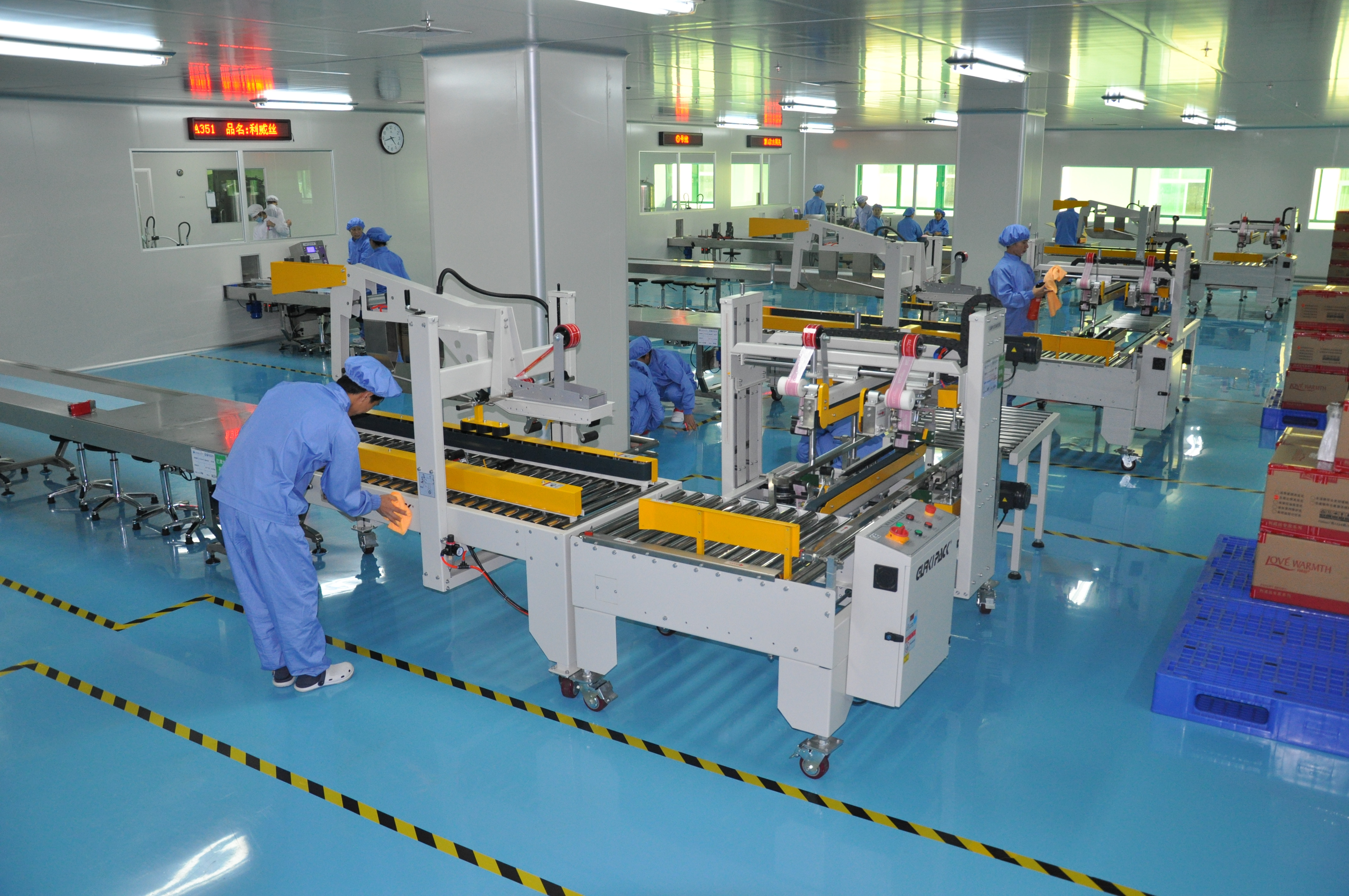 1.4条全自动角边封箱机流水线具有自动化程度较高,设备性能稳定性较强,日常量可达18万套的特点;