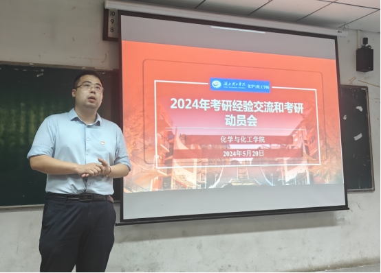 为扎实推进学风建设,助力学院人才培养,培育高质量就业,5月20日晚7点化学与化工学院在J4-201举办了2024年考研经验交流和考研动员会。化工学院党总支书记左小华、副书记闵建华、班主任代表及就业辅导员出席了本次活动。活动由化学工程教研室党支部书记张志敏博士主持。交流会由学生经验分享、现场问答、考研指导教师分享、考研寄语四个部分组成。