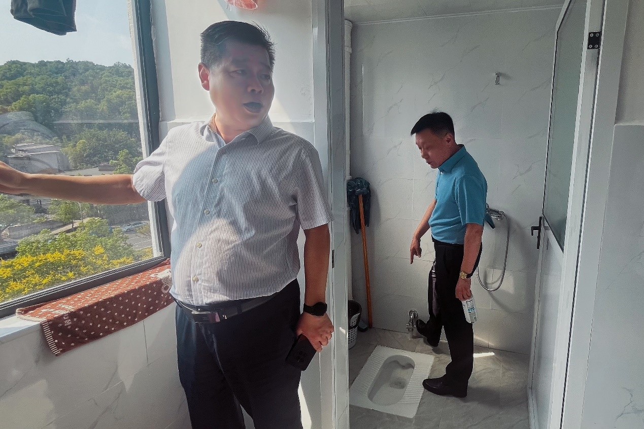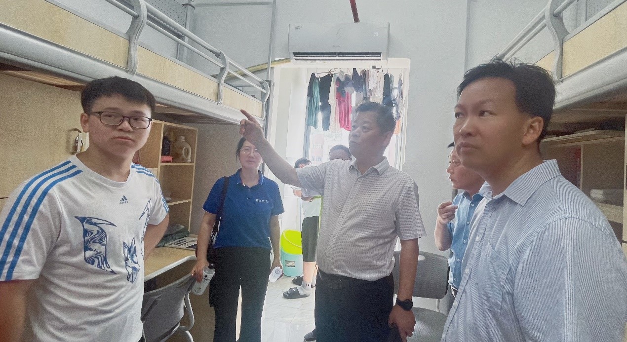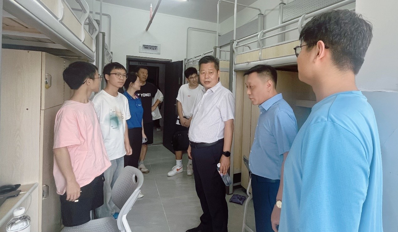 冯运仿仔细查看新生的住宿环境,详细了解学生宿舍家具材质,关注生活用水、用电,耐心解答同学们关于新宿舍的困惑。他强调,良好的宿舍环境是每位学生在校安心学习、快乐生活的重要保障;学校相关部门和各教学院要相互配合,通力协作,保障宿舍的安全与舒适,确保学生住的舒心。