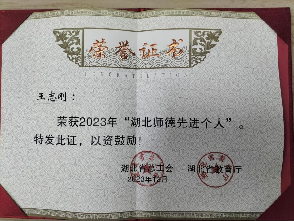 3、2023年获得“湖北师德先进个人”荣誉称号