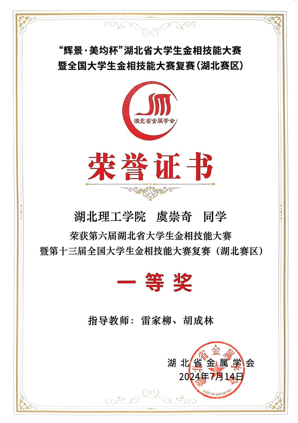 作者简介:虞崇奇,男,湖北理工学院材料科学与工程学院复合材料与工程(树脂基)专业2023级本科生,荣获2024年湖北理工学院金相技能大赛校赛一等奖;“辉景•美均杯”第六届湖北省大学生金相技能大赛个人一等奖、团体二等奖;“徕卡杯”第十三届全国大学生金相技能大赛三等奖。