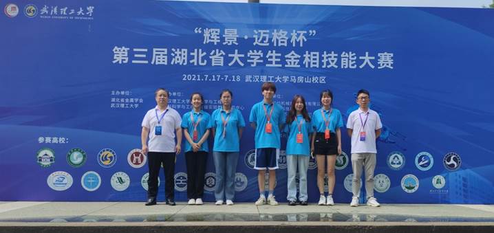 2021年7月17至18日,由湖北省金属学会和武汉理工大学联合主办的第三届湖北省大学生金相技能大赛在武汉理工大学举行。湖北理工学院材料科学与工程学院付勇军和雷家柳老师带领崔伊凡、胡可、孙竹君、徐芮峰、于蓉5名材料学子参加了此次大赛。经过激烈角逐,荣获个人一等奖2项,二等奖1项,三等奖2项及团体一等奖。