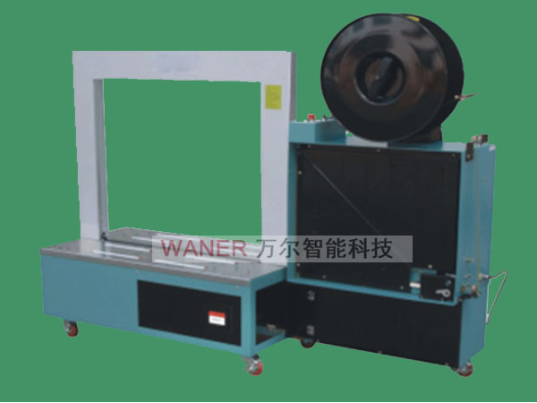1、打包物体基本处于打包机中间,右顶体上升,压紧带的前端,把带子收紧捆在物体上,
